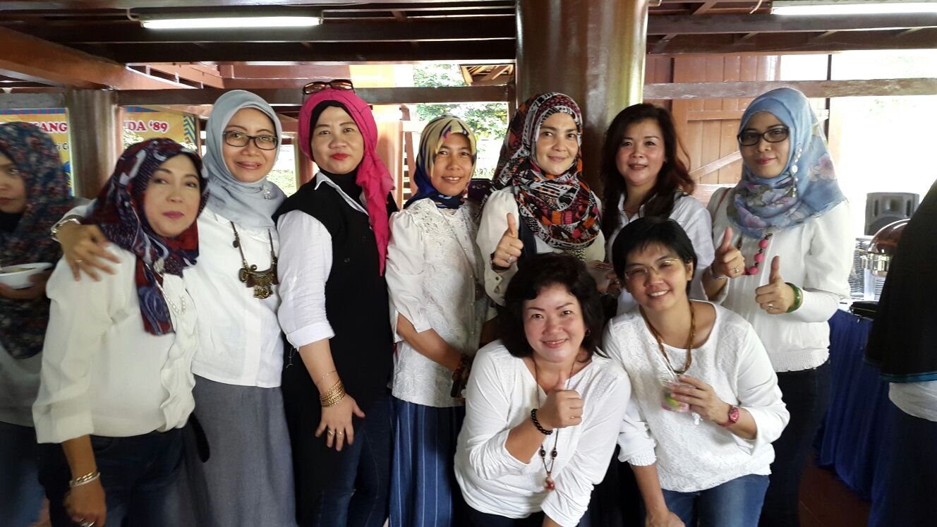 Dari kiri ke kanan : Ibu Septriana Tangkary di sebelah kiri, diapit sama Norma thamrin, juga ada Elly Octariani yang jauh-jauh dari Palembang… saluuut deh… ada Evi Riana, ketua arisan.. bravo sis,… kereen acaranya. Nah… Mrs Sumiyarti kali ini mengacungkan jempolnya yang di “Asuransi”kan. Tuti Analawati, Elly Fardiana Latief dengan 2 jempolnya. Di depan : Lily, teman sekelas saya di 1-8 serta Mona Mensana.